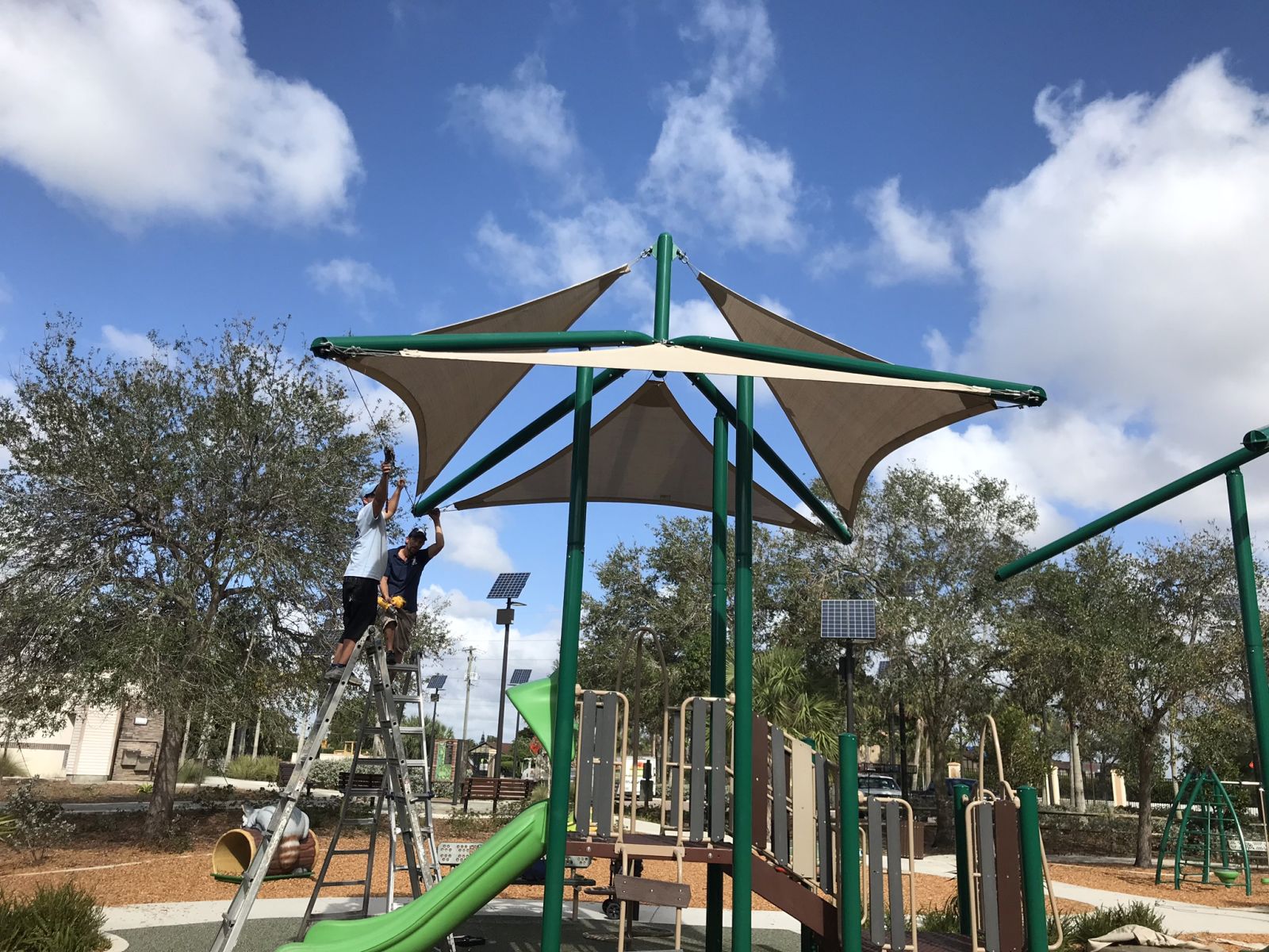 The pictures below are Sun Shades that we fabricated and installed in a park.
