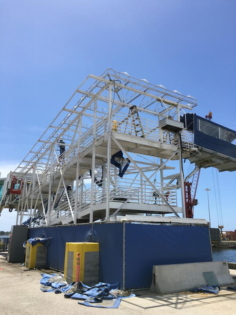 Awning Contractors & Designers, Inc. completed an awning project for the Port of Palm Beach that included awning design, awning fabrication, awning installation and the results speak for themselves.